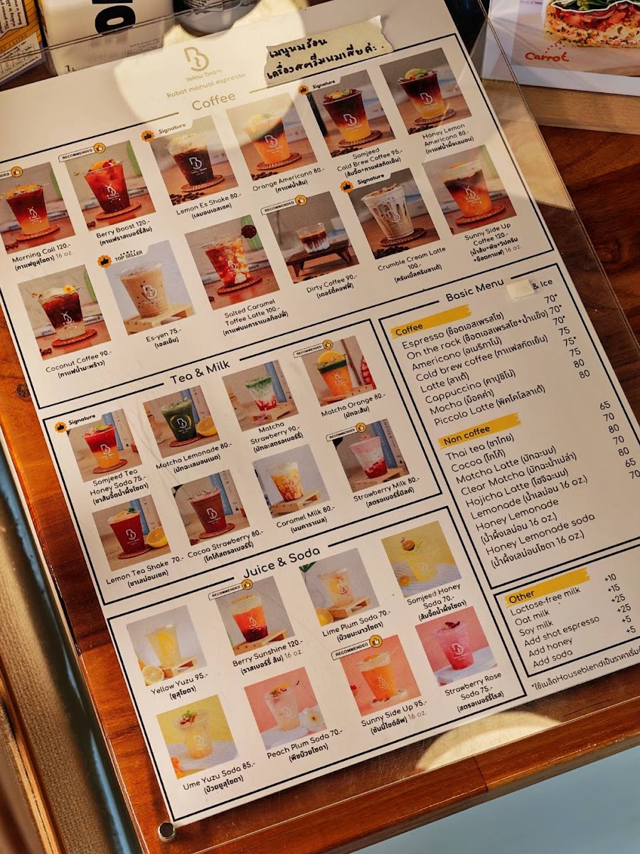 What truly sets Yellow Beans apart is its exceptional menu, which highlights a variety of unique coffee and tea offerings. For coffee aficionados, the Morning Call (กาแฟยูสุโซดา) and the Honey Lemon Americano (กาแฟน้ำผึ้งเลมอน) stand out with their refreshing twists on traditional brews. For something truly special, try the Somjeed Cold Brew Coffee (ส้มจี๊ด+กาแฟสกัดเย็น) that marries citrus notes with rich coffee flavor for an invigorating kick.